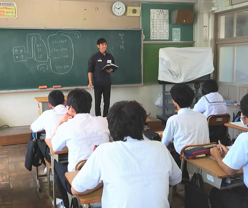 地元中学生に石油基礎知識・今後の石油産業話を中心に定期的に講義活動を行っています。
