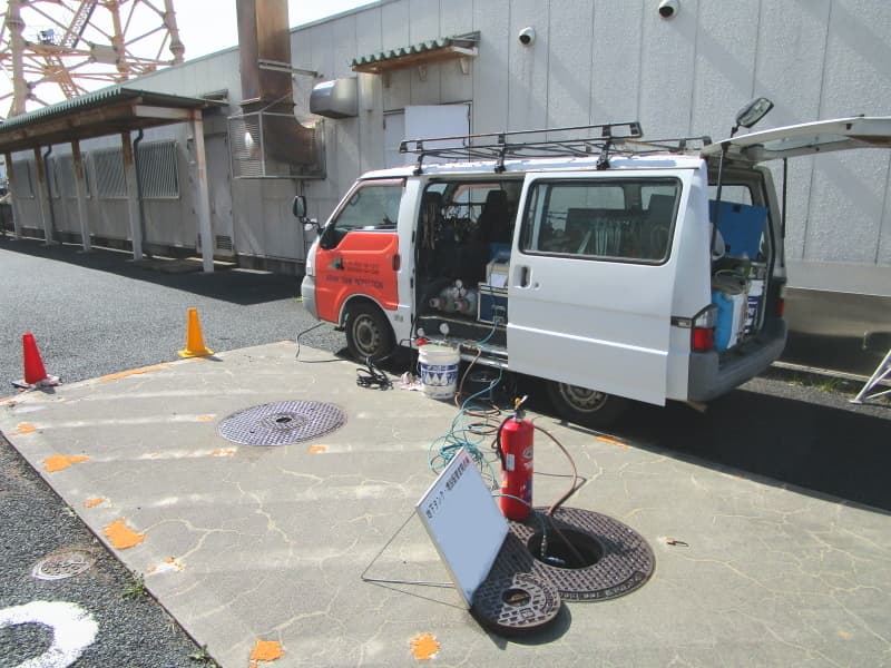 地上タンク内に沈殿したスラッジの除去の為、定期的にタンク内の清掃を行っていきます。